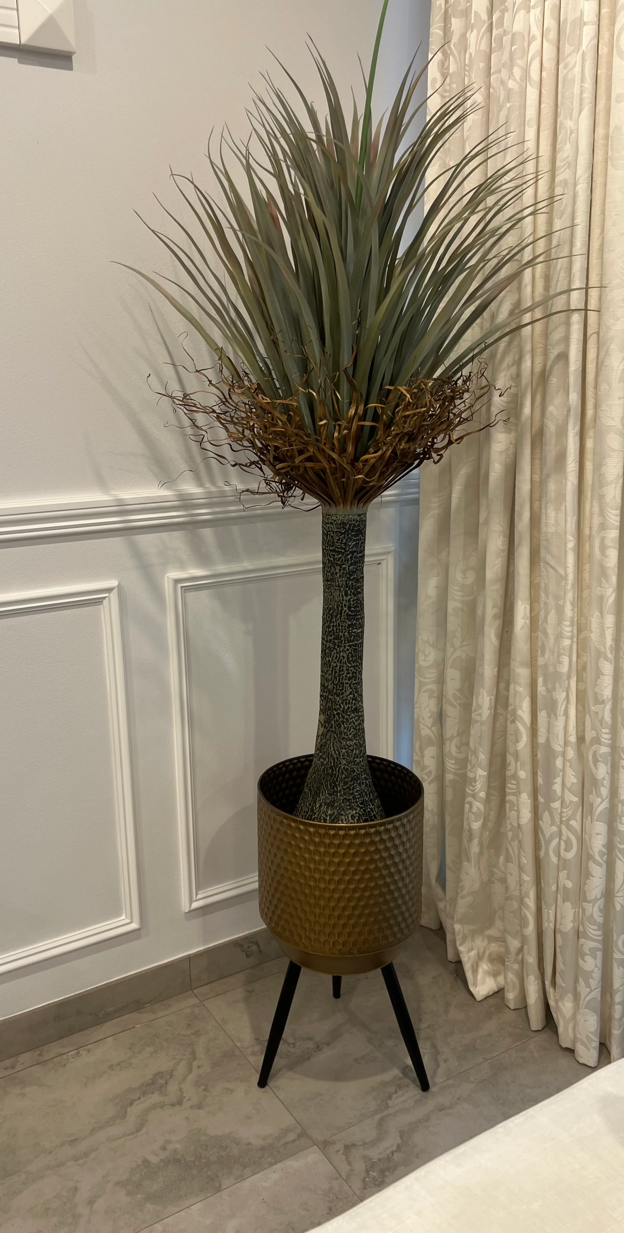 Large Dragon palm Artificial plant / gold metal pot