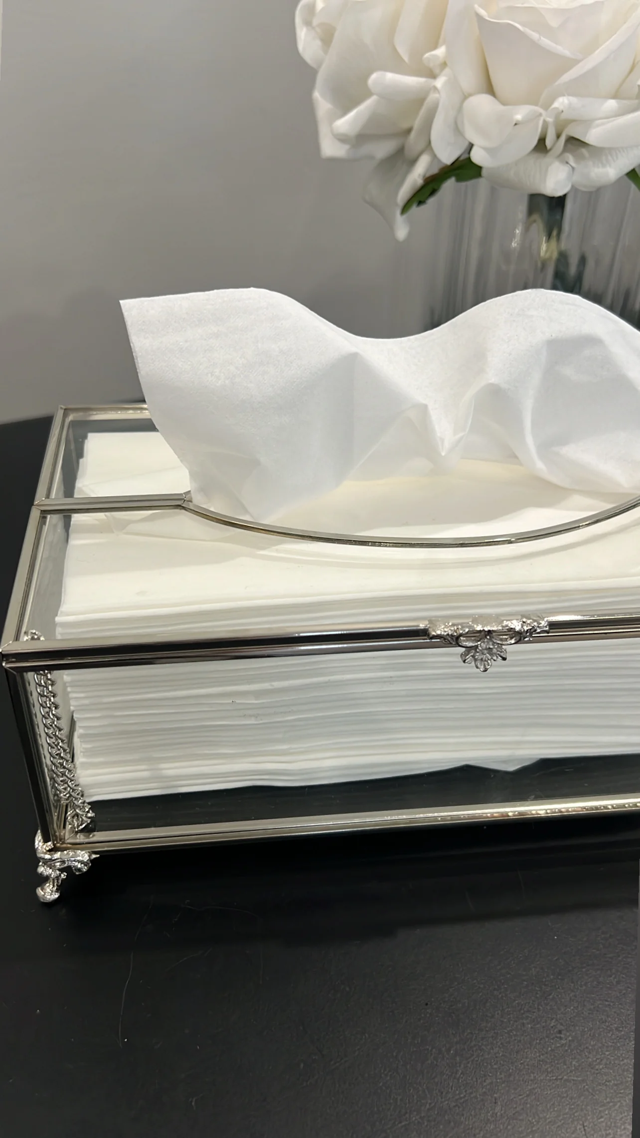 Valentina silver tissue box—